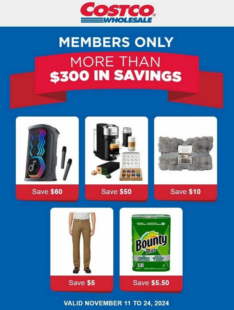 This page provides you with the latest weekly flyer for Costco. Offers start Monday 11/11 and expire Sunday 11/24/2024. You can browse through 7 pages. You are on page number 1. You have left before deals expire. Future deals will be available here on Monday 11/25/2024. Costco is preparing special offers to celebrate national holidays such as Victoria Day, Canada Day and Civic Holiday. You will find the offers here. Please see Walmart Flyer from December 11 (valid from Thursday 12/11 through Wednesday 12/17/2025) for more interesting offers. Additional information can be found at www.costco.ca or by dialing 1-888-426-7826.