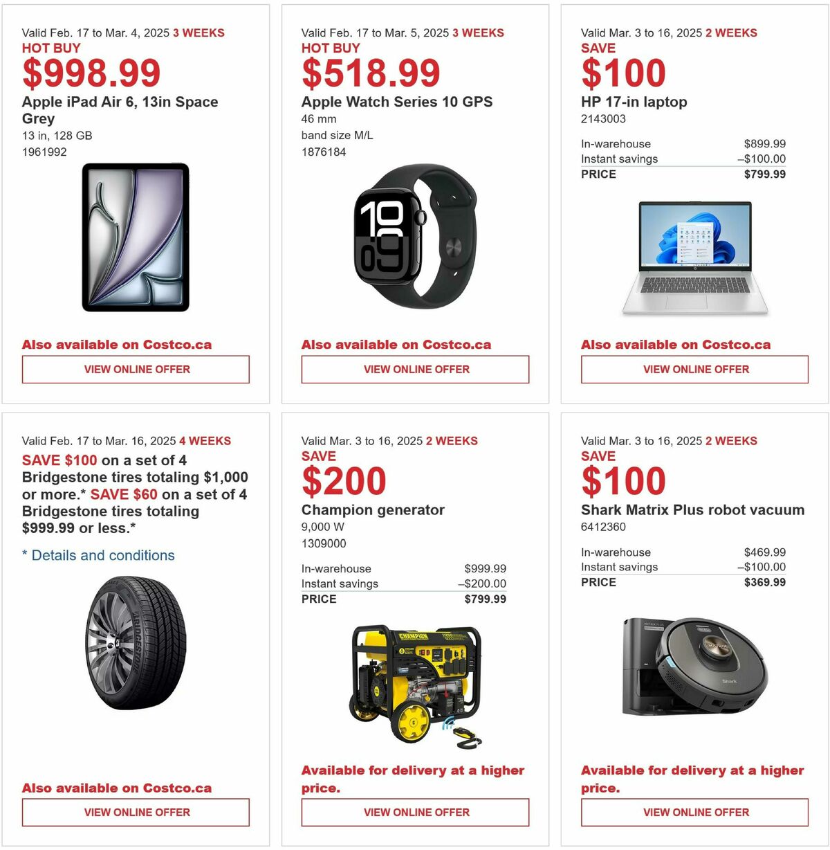 This page provides you with the latest weekly flyer for Costco. Offers start Monday 03/03 and expire Monday 03/17/2025. You can browse through 9 pages. You are on page number 2. You have left before deals expire. Future deals will be available here on Tuesday 03/18/2025. Costco is preparing special offers to celebrate national holidays such as New Year's Day, Boxing Day and Good Friday. You will find the offers here. Please see Walmart Flyer from December 11 (valid from Thursday 12/11 through Wednesday 12/17/2025) for more interesting offers. Additional information can be found at www.costco.ca or by dialing 1-888-426-7826.
