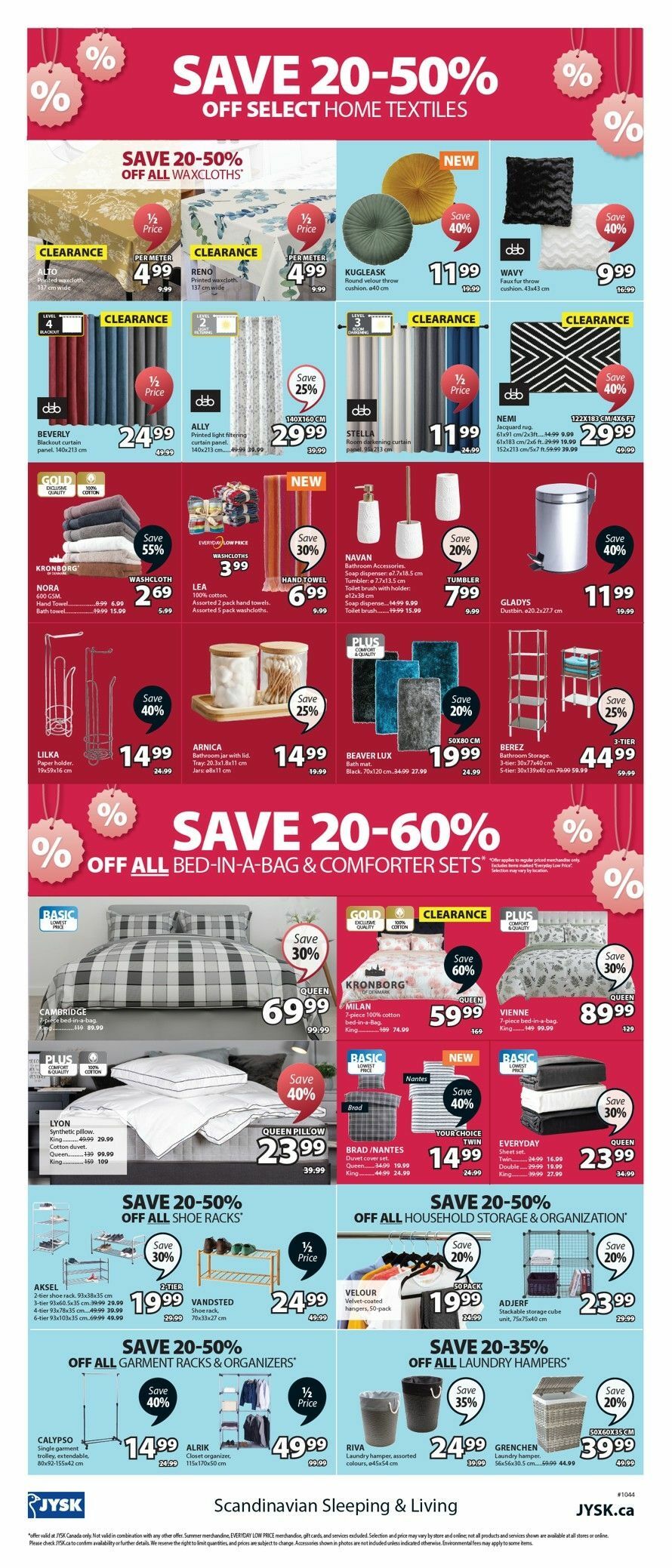 This page provides you with the latest weekly flyer for JYSK. Offers are valid Thursday 08/01 through Wednesday 08/07/2024. You can browse through 4 pages. You are on page number 4. left till the offers expire. Future deals will be available here on Thursday 08/08/2024. During public holidays (Easter Sunday, Family Day and Victoria Day, etc.), JYSK special offers are available here. Additional information can be found at www.jysk.ca or by dialing 1-888-696-5975.