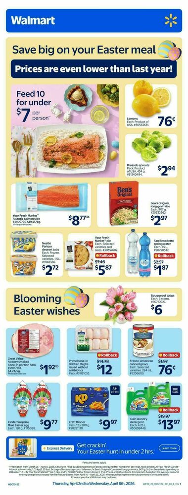Please see above for the latest weekly flyer for Safeway. Offers are valid Thursday 04/23 through Wednesday 04/29/2020. You are currently on page 1 out of 13. left till the offers expire. On Thursday 04/30/2020, you will find here a brand new weekly flyer. During public holidays (Easter Sunday, Family Day and Victoria Day, etc.), Safeway special offers are available here. Other interesting flyers are available on this page. These include Walmart Flyer from April 2 (valid from Thursday 04/02 through Wednesday 04/08/2026). To get more information call the phone number 1-800-723-3929 or visit the official website www.safeway.ca.