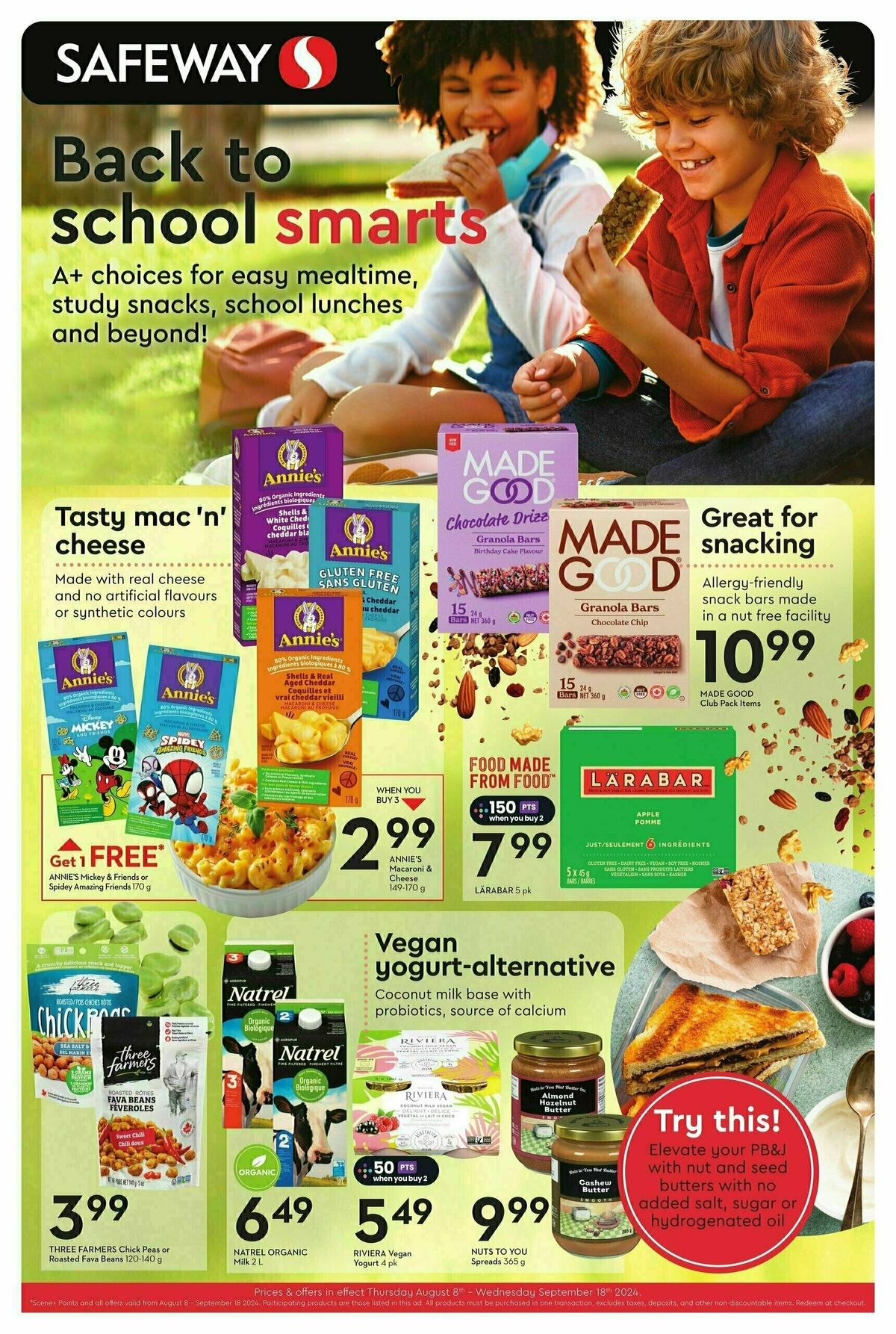 Please see above for the latest weekly flyer for Safeway. It is valid from Thursday 08/08 through Wednesday 09/18/2024. You are currently on page 1 out of 6. Deals expire in . On Thursday 09/19/2024, you will find here a brand new weekly flyer. Special offers are available here for Safeway during public holidays. These include: Family Day, Victoria Day and Canada Day. Please see Walmart Flyer from December 11 (valid from Thursday 12/11 through Wednesday 12/17/2025) for more interesting offers. To get more information call the phone number 1-800-723-3929 or visit the official website www.safeway.ca.