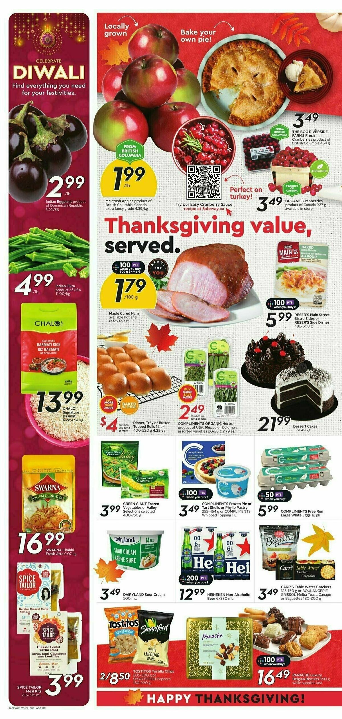 Please see above for the latest weekly flyer for Safeway. Offers are valid Thursday 10/10 through Wednesday 10/16/2024. You are currently on page 3 out of 19. left till the offers expire. On Thursday 10/17/2024, you will find here a brand new weekly flyer. During public holidays (Thanksgiving, Remembrance Day and Black Friday, etc.), Safeway special offers are available here. Please see Walmart Flyer from December 11 (valid from Thursday 12/11 through Wednesday 12/17/2025) for more interesting offers. To get more information call the phone number 1-800-723-3929 or visit the official website www.safeway.ca.