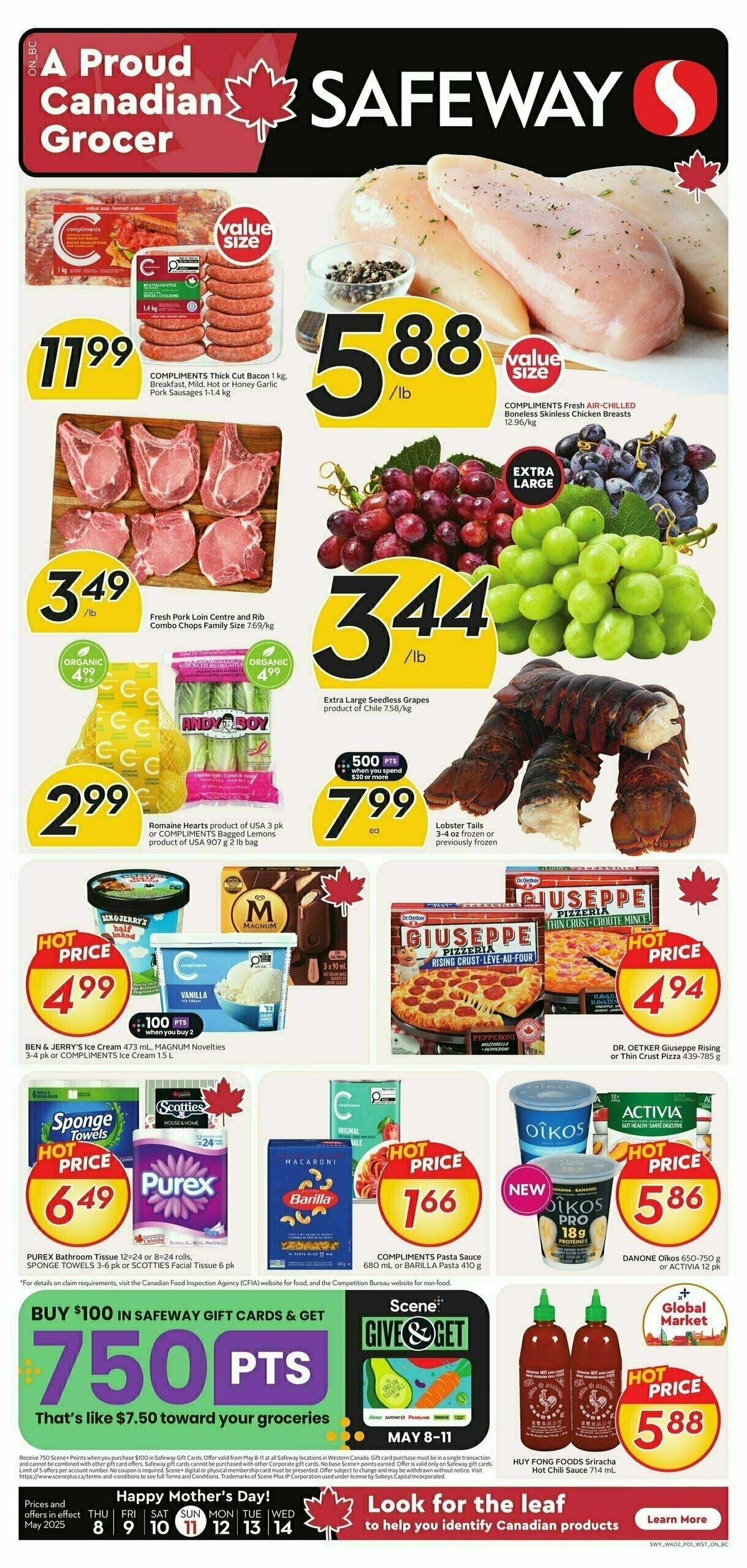 Please see above for the latest weekly flyer for Safeway. It is valid from Thursday 05/08 through Wednesday 05/14/2025. You are currently on page 1 out of 20. Deals expire in . On Thursday 05/15/2025, you will find here a brand new weekly flyer. Special offers are available here for Safeway during public holidays. These include: Family Day, Victoria Day and Canada Day. Please see Walmart Flyer from December 11 (valid from Thursday 12/11 through Wednesday 12/17/2025) for more interesting offers. To get more information call the phone number 1-800-723-3929 or visit the official website www.safeway.ca.