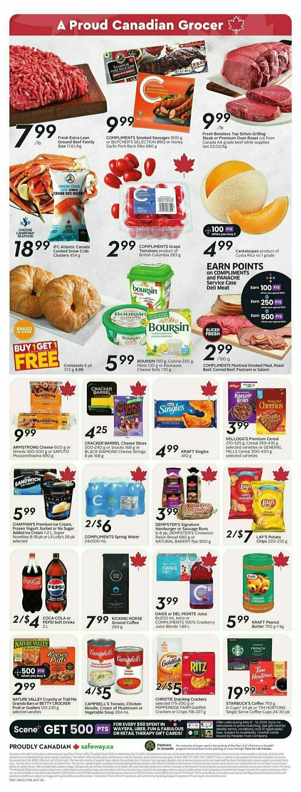 Please see above for the latest weekly flyer for Safeway. It is valid from Thursday 05/08 through Wednesday 05/14/2025. You are currently on page 2 out of 20. Deals expire in . On Thursday 05/15/2025, you will find here a brand new weekly flyer. Special offers are available here for Safeway during public holidays. These include: Family Day, Victoria Day and Canada Day. Please see Walmart Flyer from December 11 (valid from Thursday 12/11 through Wednesday 12/17/2025) for more interesting offers. To get more information call the phone number 1-800-723-3929 or visit the official website www.safeway.ca.