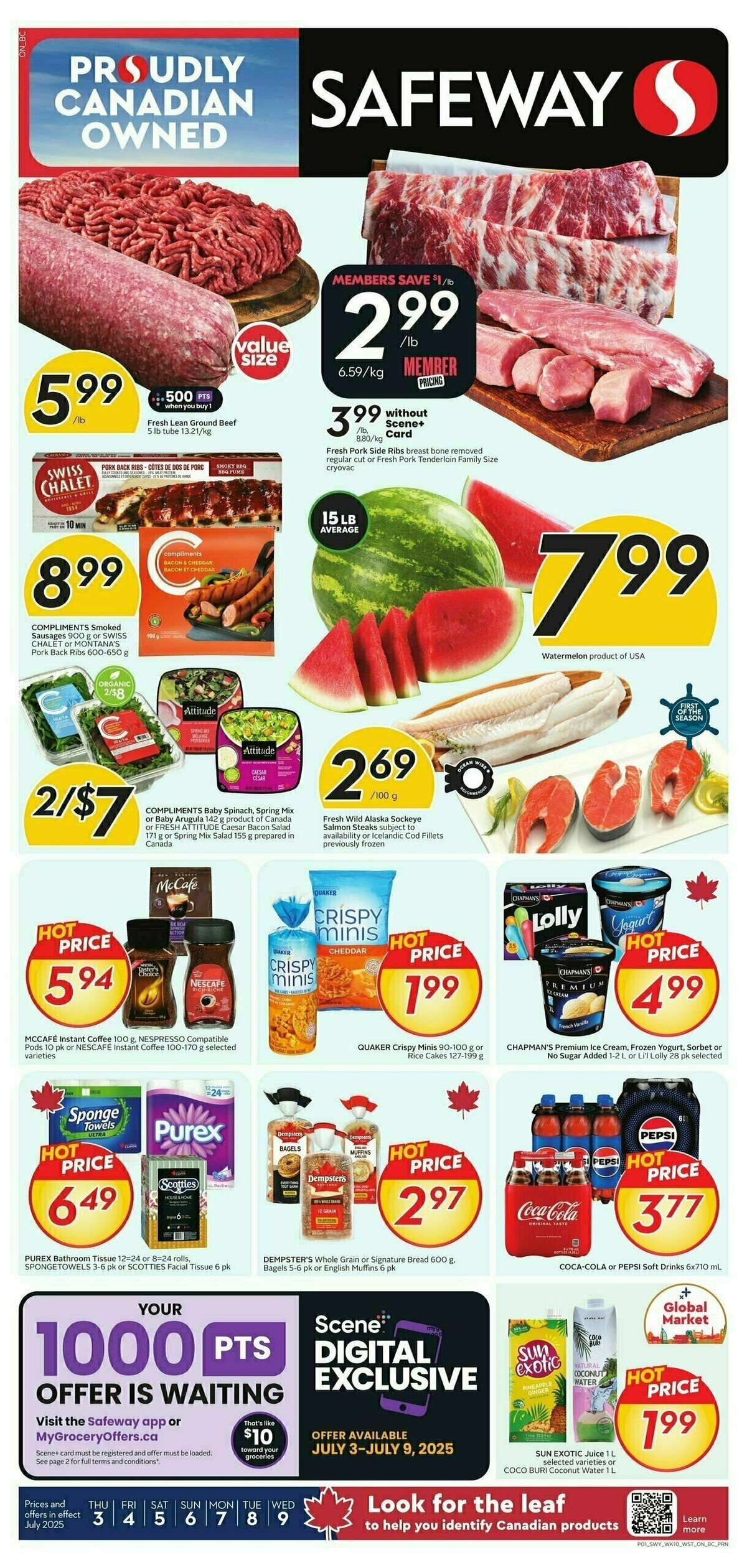 Please see above for the latest weekly flyer for Safeway. It is valid from Thursday 07/03 through Wednesday 07/09/2025. You are currently on page 1 out of 17. Deals expire in . On Thursday 07/10/2025, you will find here a brand new weekly flyer. Special offers are available here for Safeway during public holidays. These include: Family Day, Victoria Day and Canada Day. Please see Walmart Flyer from December 11 (valid from Thursday 12/11 through Wednesday 12/17/2025) for more interesting offers. To get more information call the phone number 1-800-723-3929 or visit the official website www.safeway.ca.