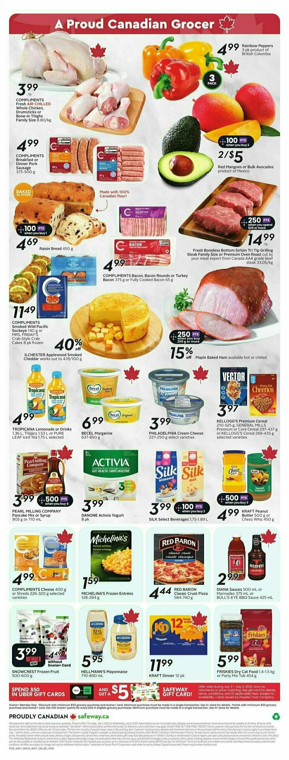 Please see above for the latest weekly flyer for Safeway. It is valid from Thursday 07/03 through Wednesday 07/09/2025. You are currently on page 3 out of 17. Deals expire in . On Thursday 07/10/2025, you will find here a brand new weekly flyer. Special offers are available here for Safeway during public holidays. These include: Family Day, Victoria Day and Canada Day. Please see Walmart Flyer from December 11 (valid from Thursday 12/11 through Wednesday 12/17/2025) for more interesting offers. To get more information call the phone number 1-800-723-3929 or visit the official website www.safeway.ca.