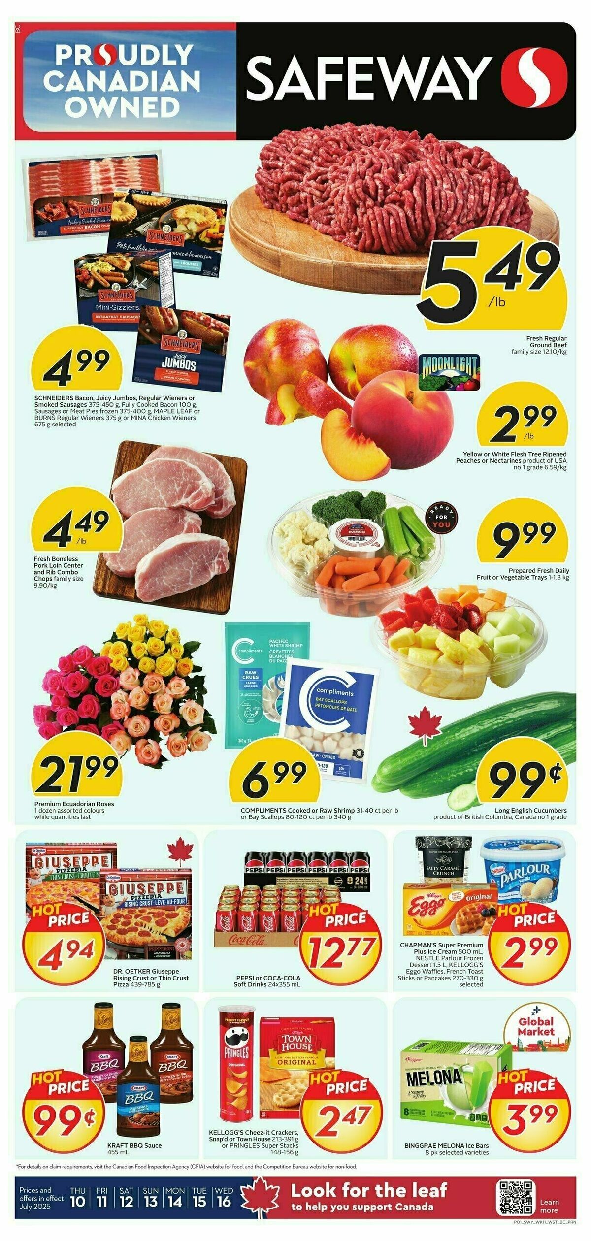 Please see above for the latest weekly flyer for Safeway. It is valid from Thursday 07/10 through Wednesday 07/16/2025. You are currently on page 1 out of 19. Deals expire in . On Thursday 07/17/2025, you will find here a brand new weekly flyer. Special offers are available here for Safeway during public holidays. These include: Remembrance Day, Black Friday and Xmas Day. Please see Walmart Flyer from December 18 (valid from Thursday 12/18 through Wednesday 12/24/2025) for more interesting offers. To get more information call the phone number 1-800-723-3929 or visit the official website www.safeway.ca.