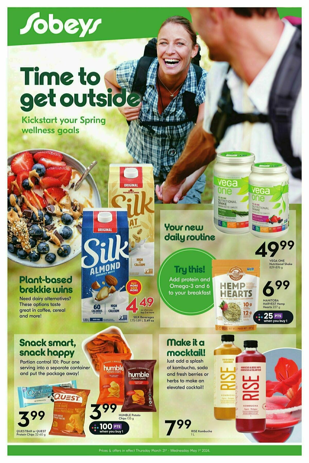 This page provides you with the latest weekly flyer for Sobeys. It is valid from Thursday 03/21 through Wednesday 05/01/2024. You can browse through 5 pages. You are on page number 1. Deals expire in . Future deals will be available here on Thursday 05/02/2024. Special offers are available here for Sobeys during public holidays. These include: Xmas Day, New Year's Day and Boxing Day. Please see Walmart Flyer from December 11 (valid from Thursday 12/11 through Wednesday 12/17/2025) for more interesting offers. Additional information can be found at www.sobeys.com or by dialing 1-888-944-0442.