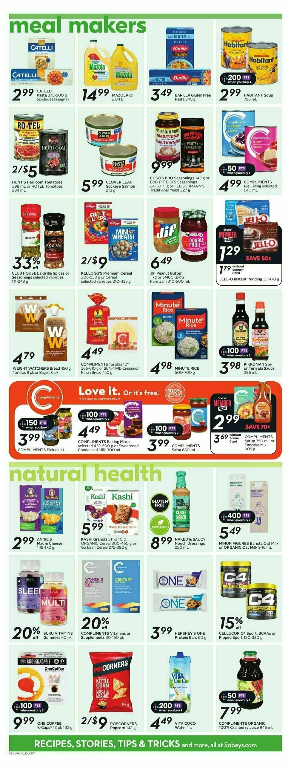 This page provides you with the latest weekly flyer for Sobeys. Offers start Thursday 01/30 and expire Wednesday 02/05/2025. You can browse through 17 pages. You are on page number 15. You have left before deals expire. Future deals will be available here on Thursday 02/06/2025. Sobeys is preparing special offers to celebrate national holidays such as New Year's Day, Boxing Day and Good Friday. You will find the offers here. Please see Walmart Flyer from December 11 (valid from Thursday 12/11 through Wednesday 12/17/2025) for more interesting offers. Additional information can be found at www.sobeys.com or by dialing 1-888-944-0442.