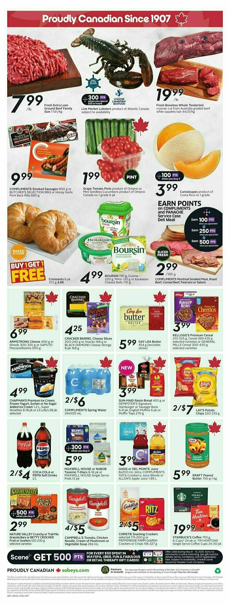 This page provides you with the latest weekly flyer for Sobeys. Offers are valid Thursday 05/08 through Wednesday 05/14/2025. You can browse through 20 pages. You are on page number 2. left till the offers expire. Future deals will be available here on Thursday 05/15/2025. During public holidays (Easter Sunday, Family Day and Victoria Day, etc.), Sobeys special offers are available here. Please see Walmart Flyer from December 11 (valid from Thursday 12/11 through Wednesday 12/17/2025) for more interesting offers. Additional information can be found at www.sobeys.com or by dialing 1-888-944-0442.