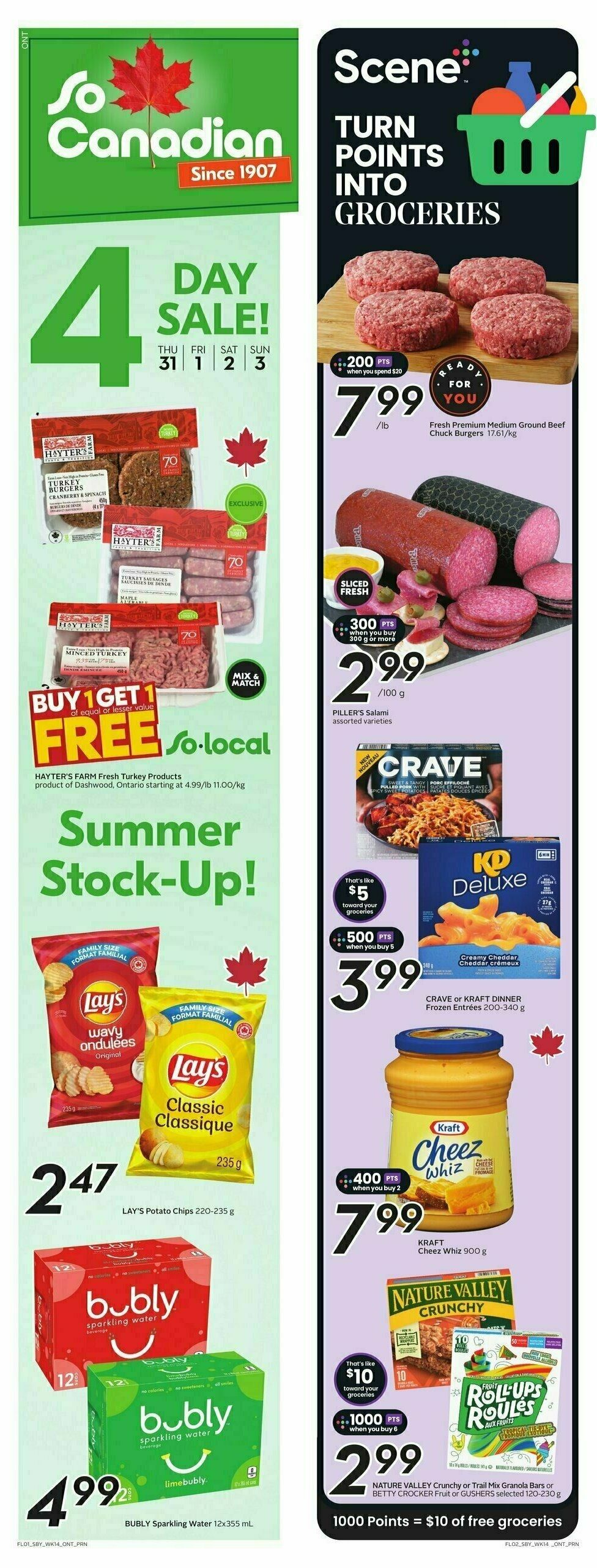 This page provides you with the latest weekly flyer for Sobeys. Offers are valid Thursday 07/31 through Wednesday 08/06/2025. You can browse through 19 pages. You are on page number 2. left till the offers expire. Future deals will be available here on Thursday 08/07/2025. During public holidays (Thanksgiving, Remembrance Day and Black Friday, etc.), Sobeys special offers are available here. Please see Walmart Flyer from December 18 (valid from Thursday 12/18 through Wednesday 12/24/2025) for more interesting offers. Additional information can be found at www.sobeys.com or by dialing 1-888-944-0442.