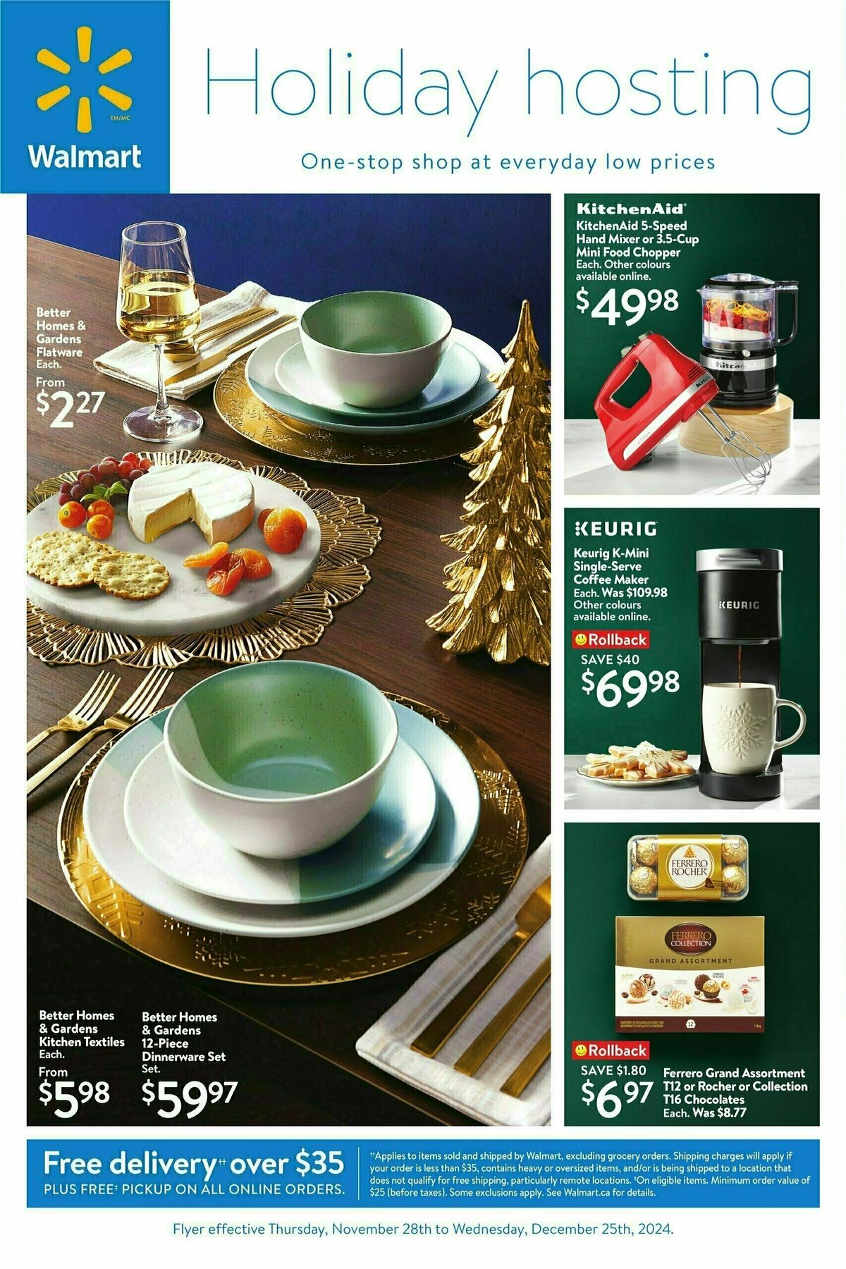 On this page you can find the latest weekly flyer for Walmart. It is valid from Thursday 11/28 through Wednesday 12/25/2024. You are currently viewing page 1 out of 19. Deals expire in . A brand new weekly flyer will be available here on Thursday 12/26/2024. Special offers are available here for Walmart during public holidays. These include: Civic Holiday, Labour Day and Thanksgiving. Other interesting flyers are available on this page. These include Safeway Flyer from December 11 (valid from Thursday 12/11 through Wednesday 12/17/2025). Dial the number 1-800-328-0402 or go to www.walmart.ca for additional information.