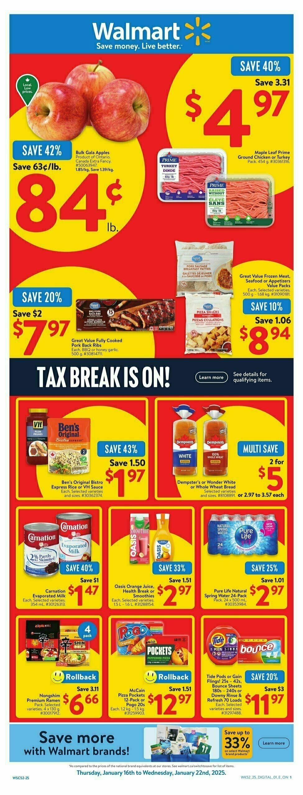 On this page you can find the latest weekly flyer for Walmart. Offers start Thursday 01/16 and expire Wednesday 01/22/2025. You are currently viewing page 1 out of 26. You have left before deals expire. A brand new weekly flyer will be available here on Thursday 01/23/2025. Walmart is preparing special offers to celebrate national holidays such as Victoria Day, Canada Day and Civic Holiday. You will find the offers here. Other interesting flyers are available on this page. These include Safeway Flyer from December 11 (valid from Thursday 12/11 through Wednesday 12/17/2025). Dial the number 1-800-328-0402 or go to www.walmart.ca for additional information.
