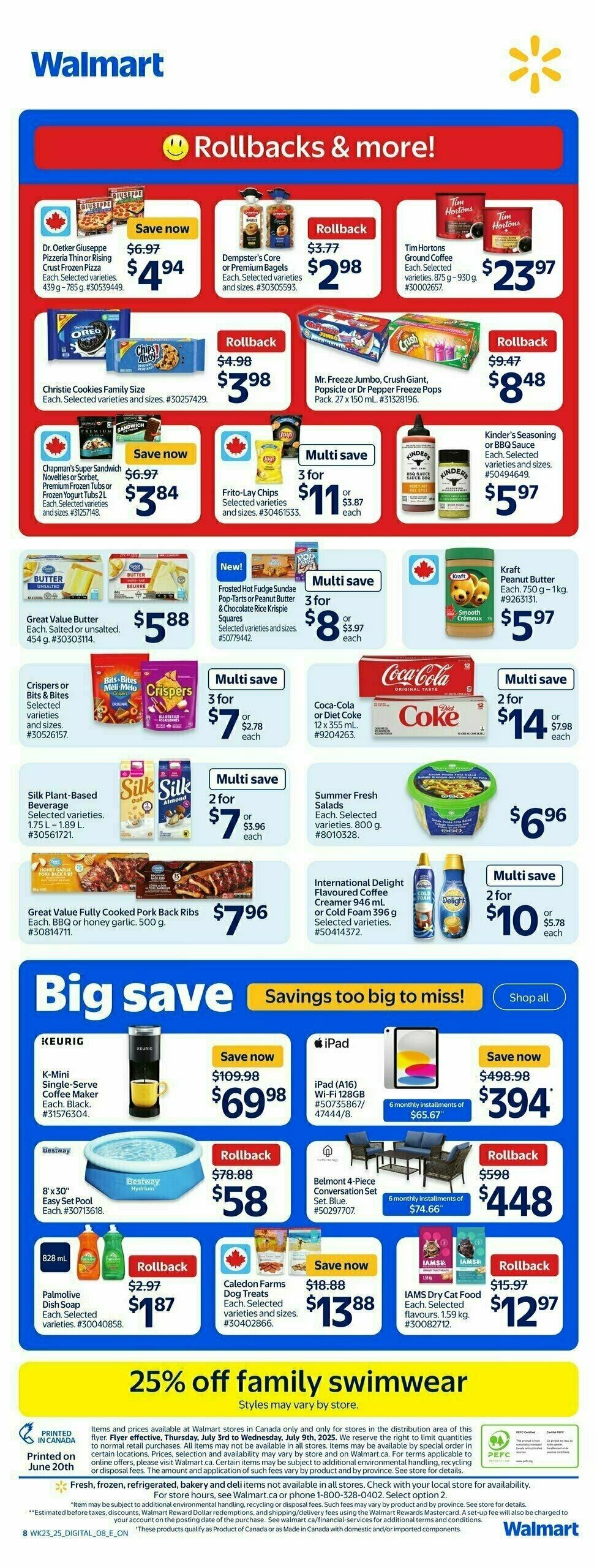 On this page you can find the latest weekly flyer for Walmart. Offers start Thursday 07/03 and expire Wednesday 07/09/2025. You are currently viewing page 2 out of 23. You have left before deals expire. A brand new weekly flyer will be available here on Thursday 07/10/2025. Walmart is preparing special offers to celebrate national holidays such as Victoria Day, Canada Day and Civic Holiday. You will find the offers here. Other interesting flyers are available on this page. These include Safeway Flyer from December 11 (valid from Thursday 12/11 through Wednesday 12/17/2025). Dial the number 1-800-328-0402 or go to www.walmart.ca for additional information.